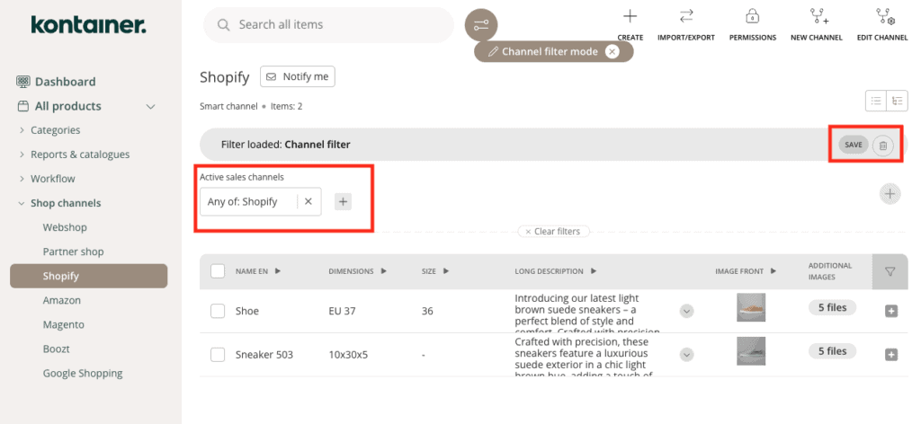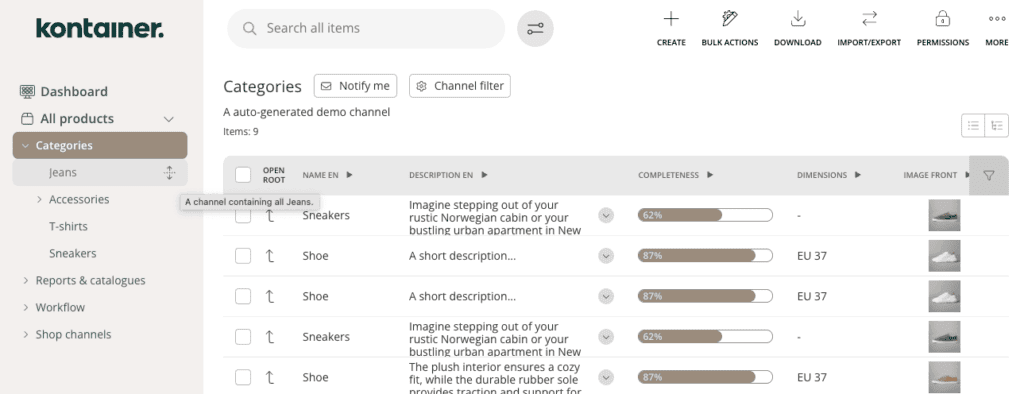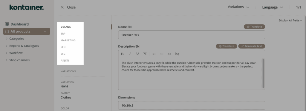 You can control which PIM fields are visible on a per-channel basis. This is especially useful for tailoring data to specific platforms or marketplaces. (We’ll dive deeper into this later.)