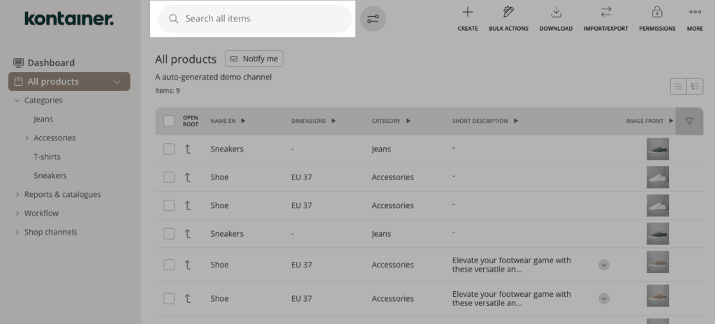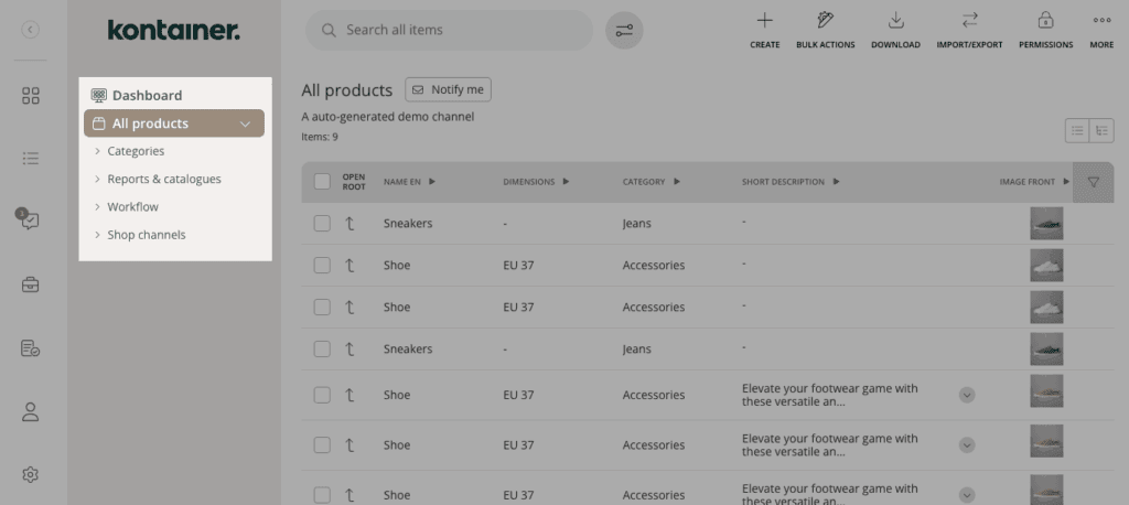 In many setups, new products are typically created in external systems such as an ERP, and then synced automatically to PIM. However, it’s also entirely possible — and in some cases, beneficial — to create products directly within Kontainer PIM.